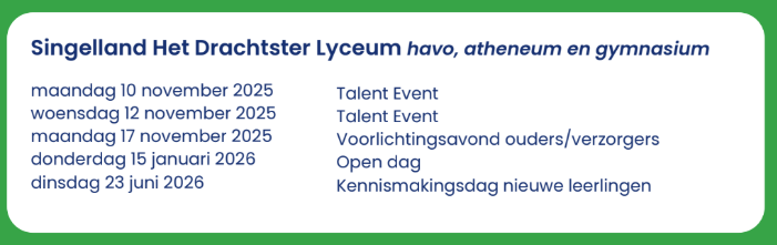 Dus als je naar de middelbare school gaat? Kom naar Het Drachtster Lyceum!
